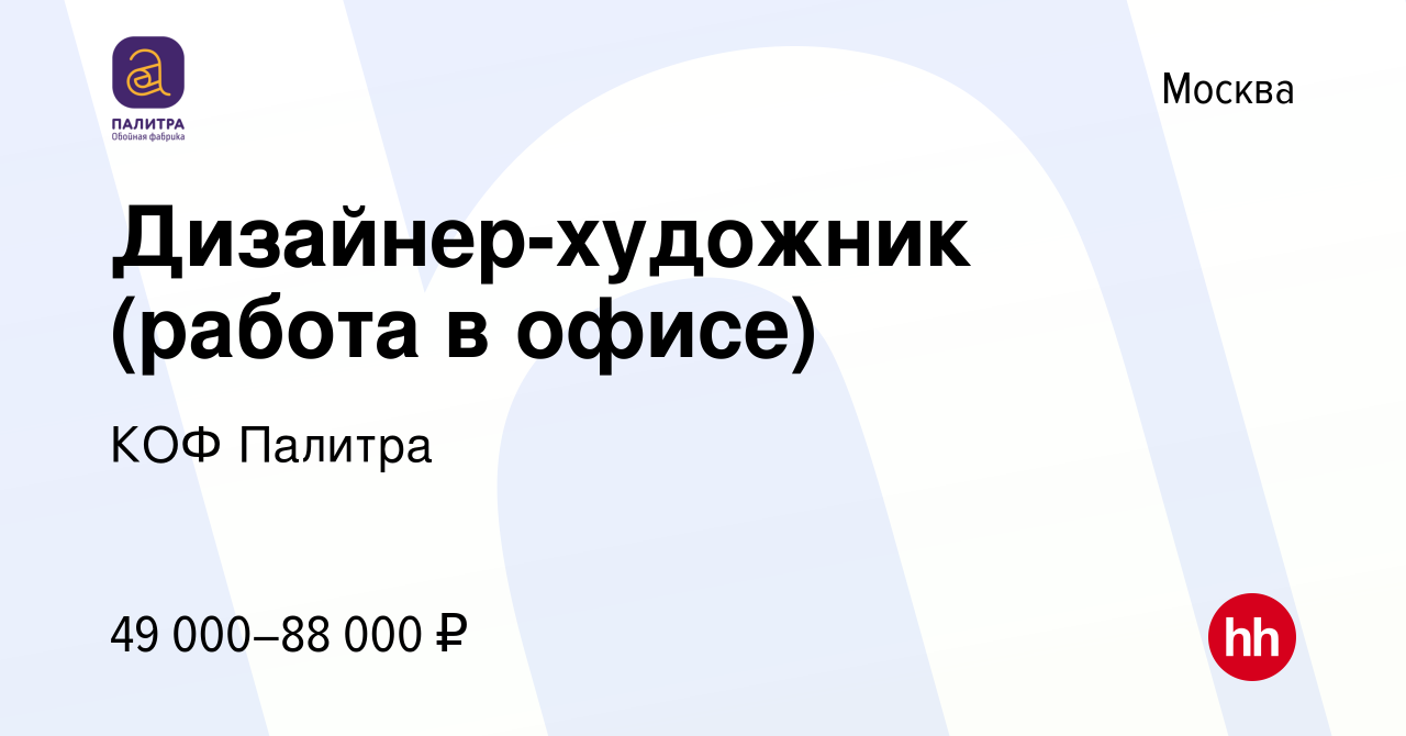 Крупнейшая обойная фабрика России ООО «КОФ «ПАЛИТРА» приглашает на работу Дизайнера-художника.